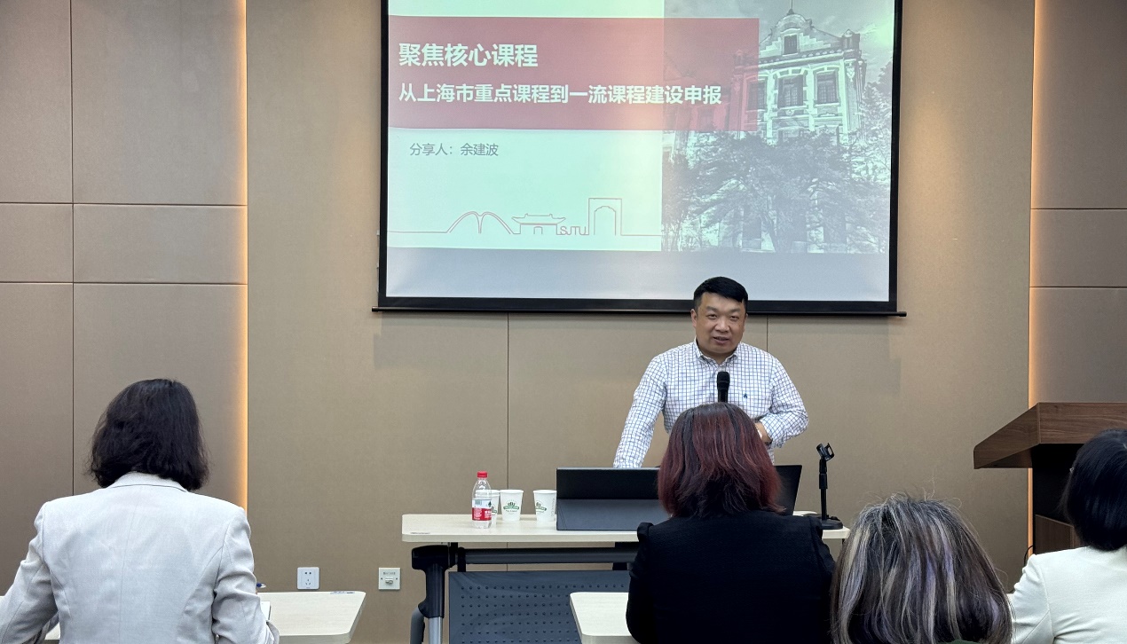 4月2日,上海交通大学课程建设专家余建波应邀为我院教师带来题为《聚焦核心课程——从上海市重点课程到一流课程建设申报》的专题辅导讲座。2023白菜网址官网大全副院长任再新、日语系系主任陈月娥以及学院相关教师参加学习。讲座由陈月娥教授主持。